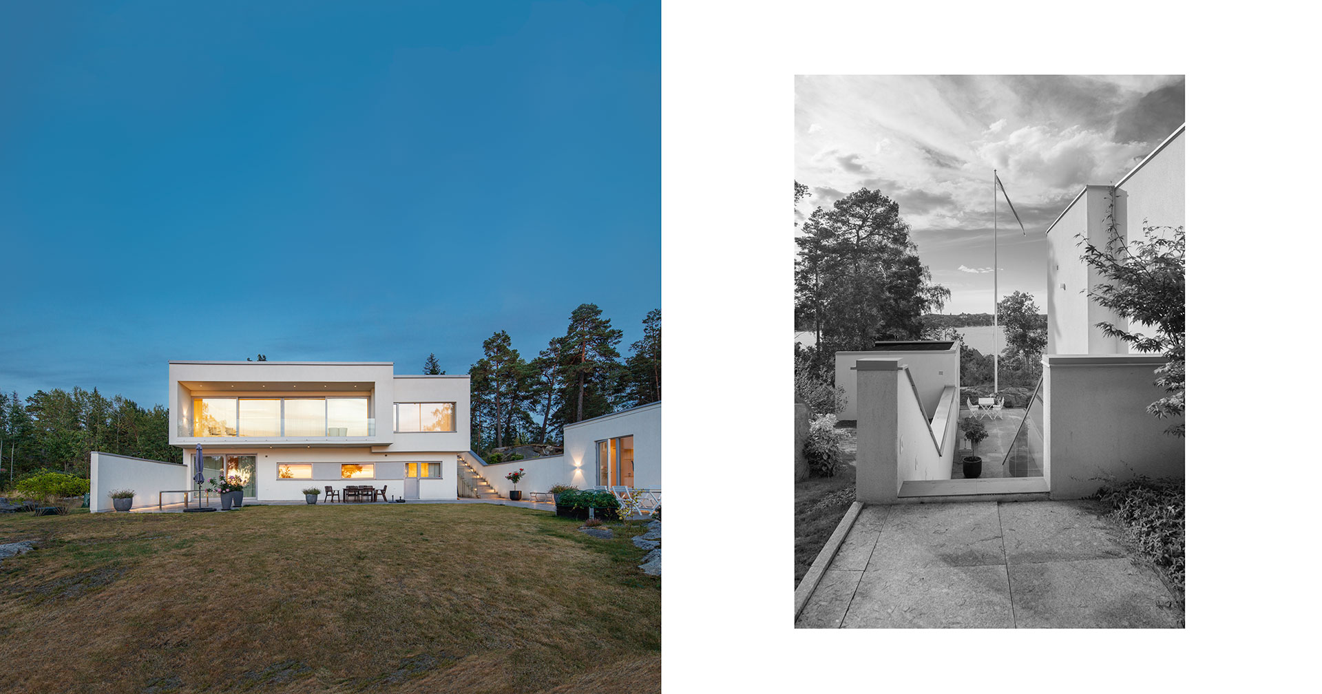 Bilder av byggnader. Med detaljer och perspektiv som lyfter fram det unika i varje fastighet.